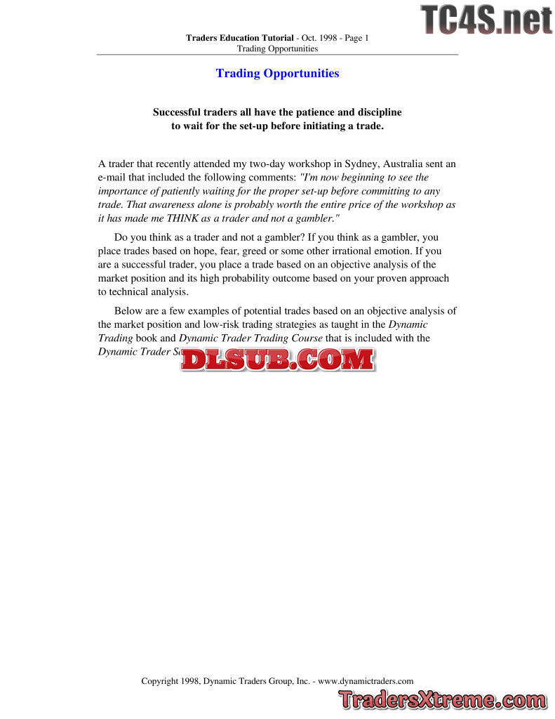 Dynamic Trader Pdf Examples Complete Investment