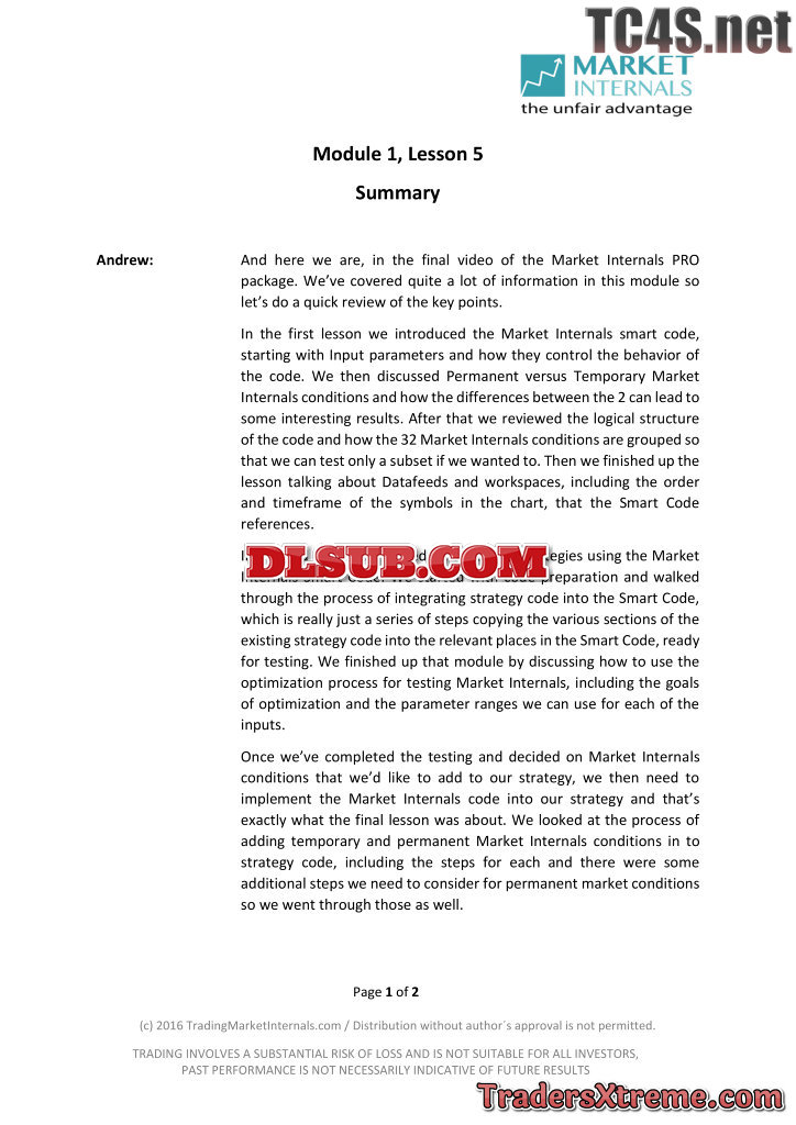 Market Internals Pro Course Tradingmarketinternals