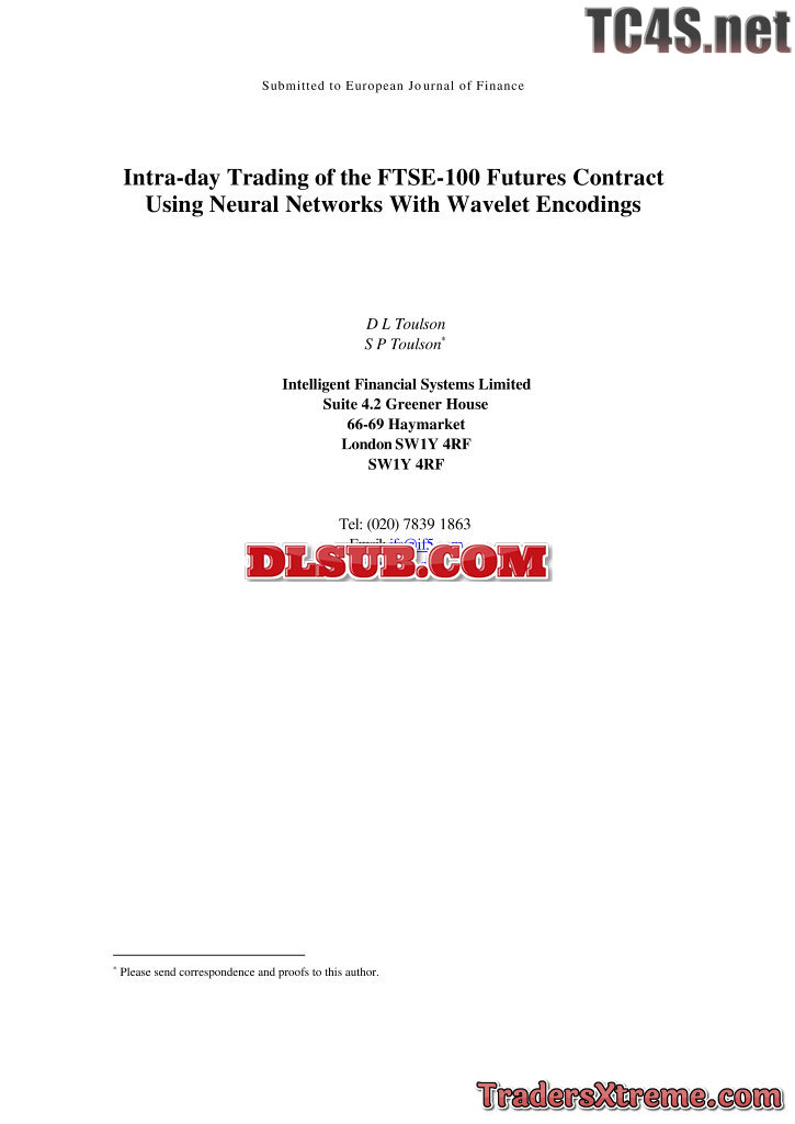 Toulson Intra Day Trading Of The Ftse100 Futures Contract Using Neural Networks With Wavelet En - JPG Image File