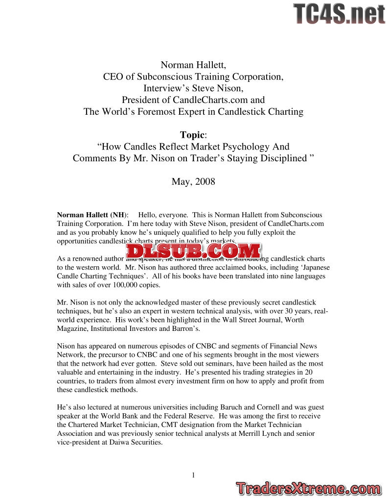 Candlesticks And Market Sentiment With Steve Nison Transcript Of Mp3 - JPG Image File