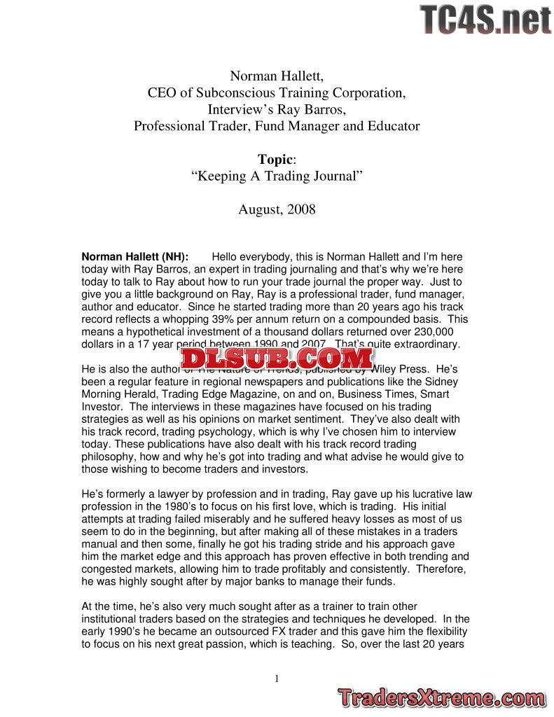 Keeping A Trading Journal With Ray Barros Transcript Of Mp3 - JPG Image File