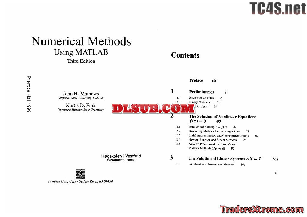 Mathews J H Fink K D Numerical Methods Using Matlab Prentice Hall 1999 3rd Ed En662s - JPG Image File