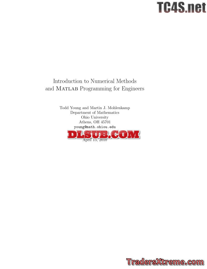 Young T Mohlenkamp M Introduction To Numerical Methods And Matlab Programming For Engineers 15 04 2010en171s - JPG Image File
